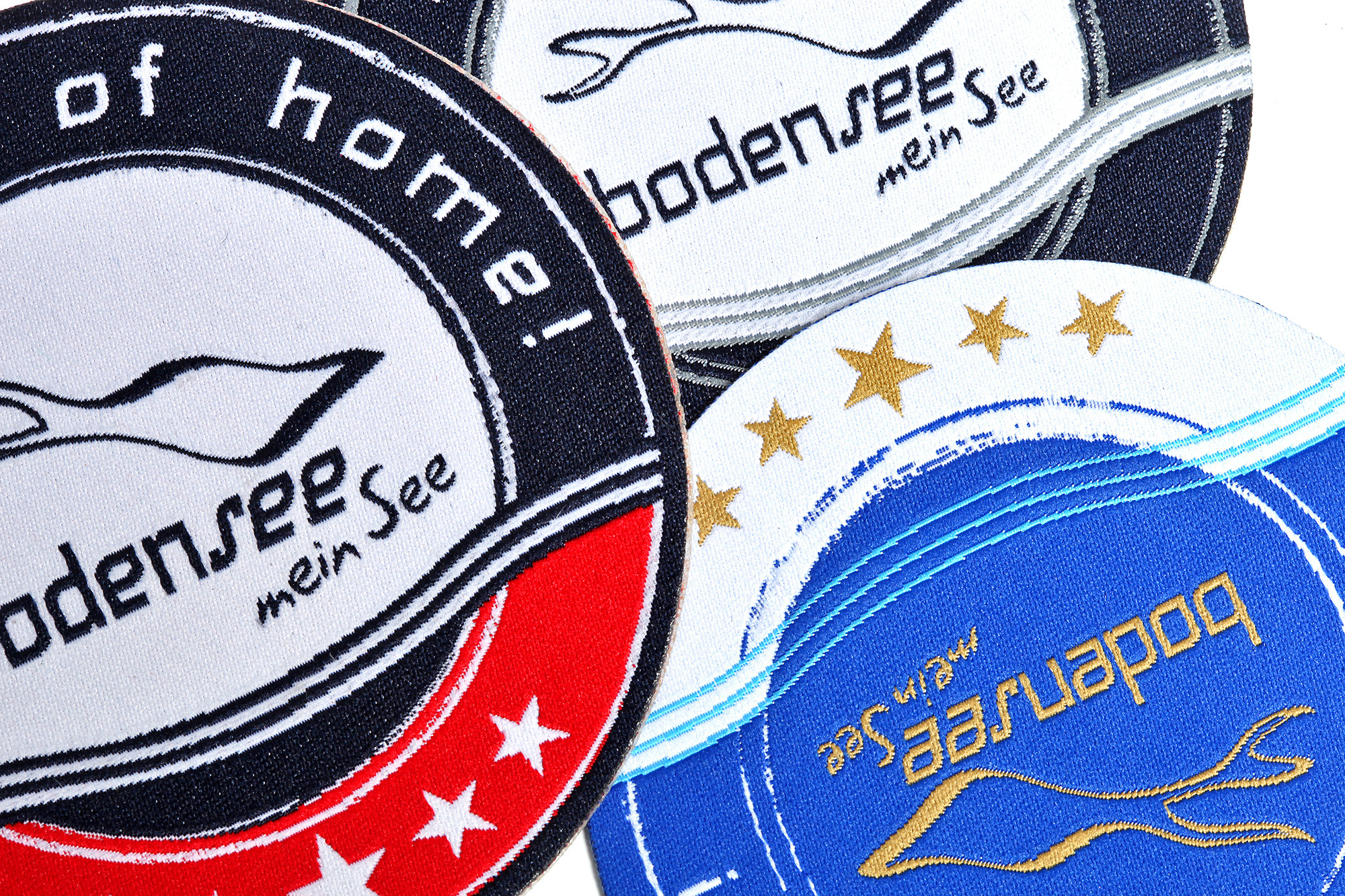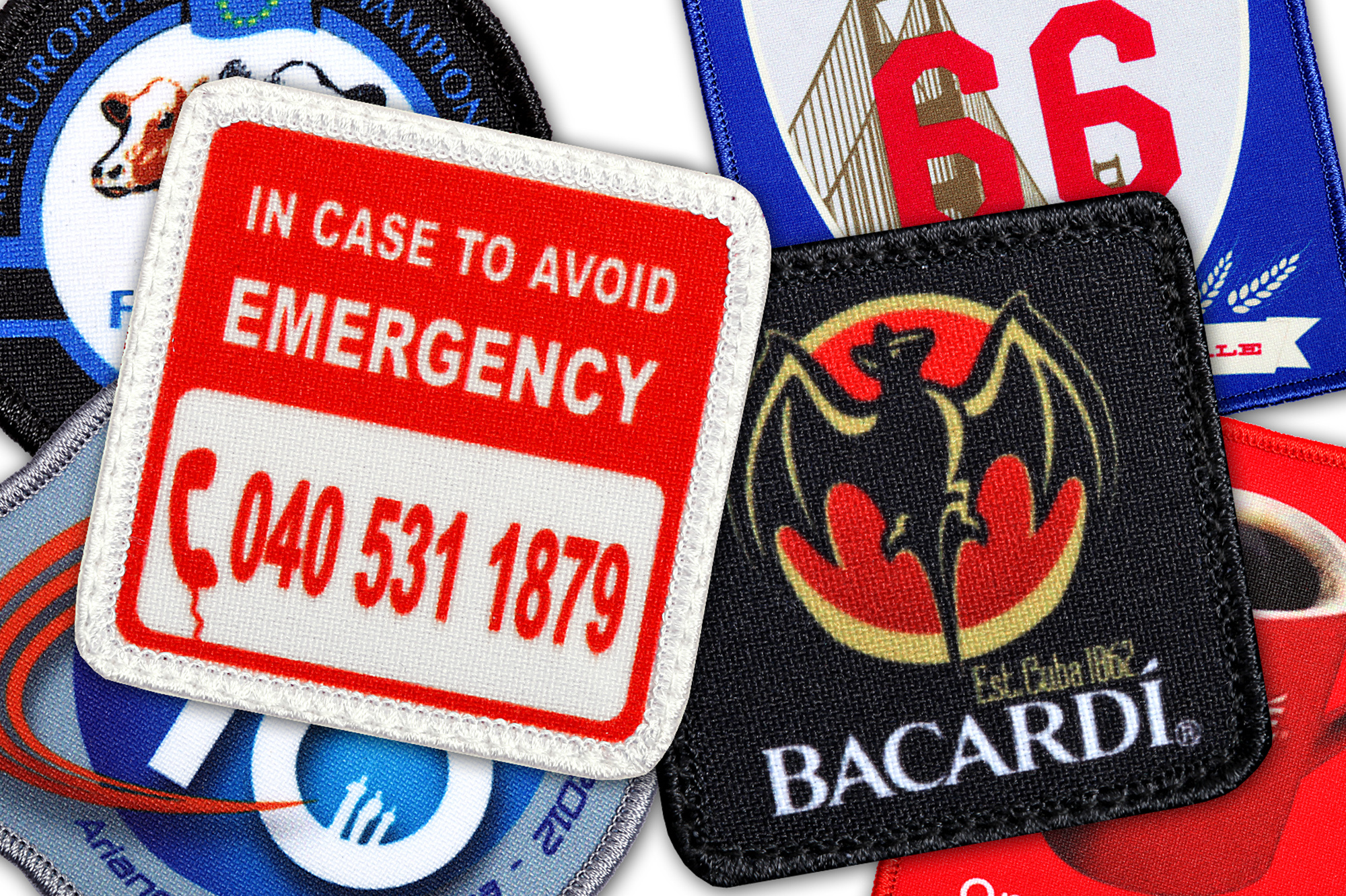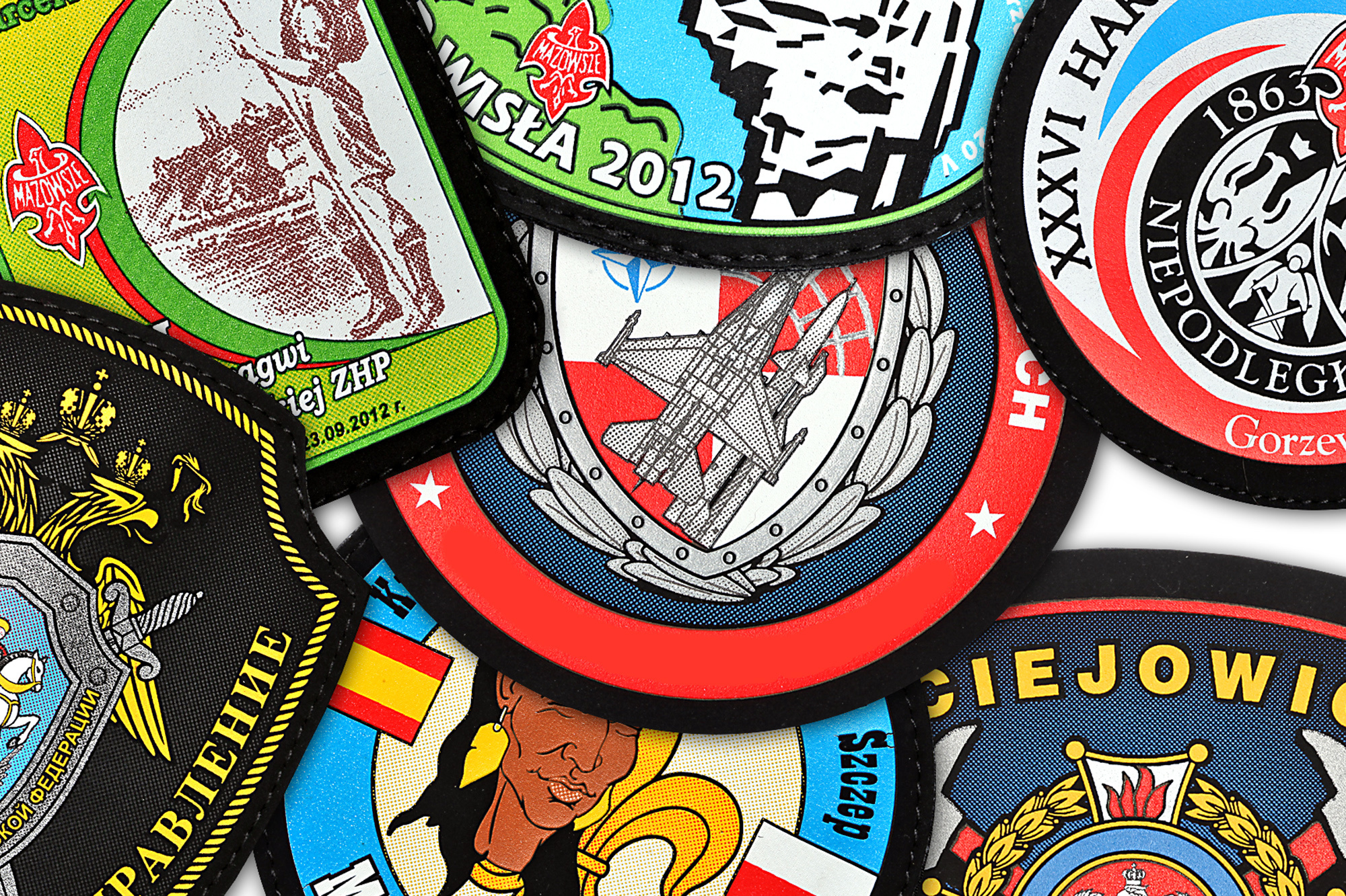 Badges en tissu de polyester avec un design créé à l'aide de l'impression par sublimation, résistant aux facteurs externes et au rayonnement UV. C'est le choix unique pour les designs avec des transitions tonales.