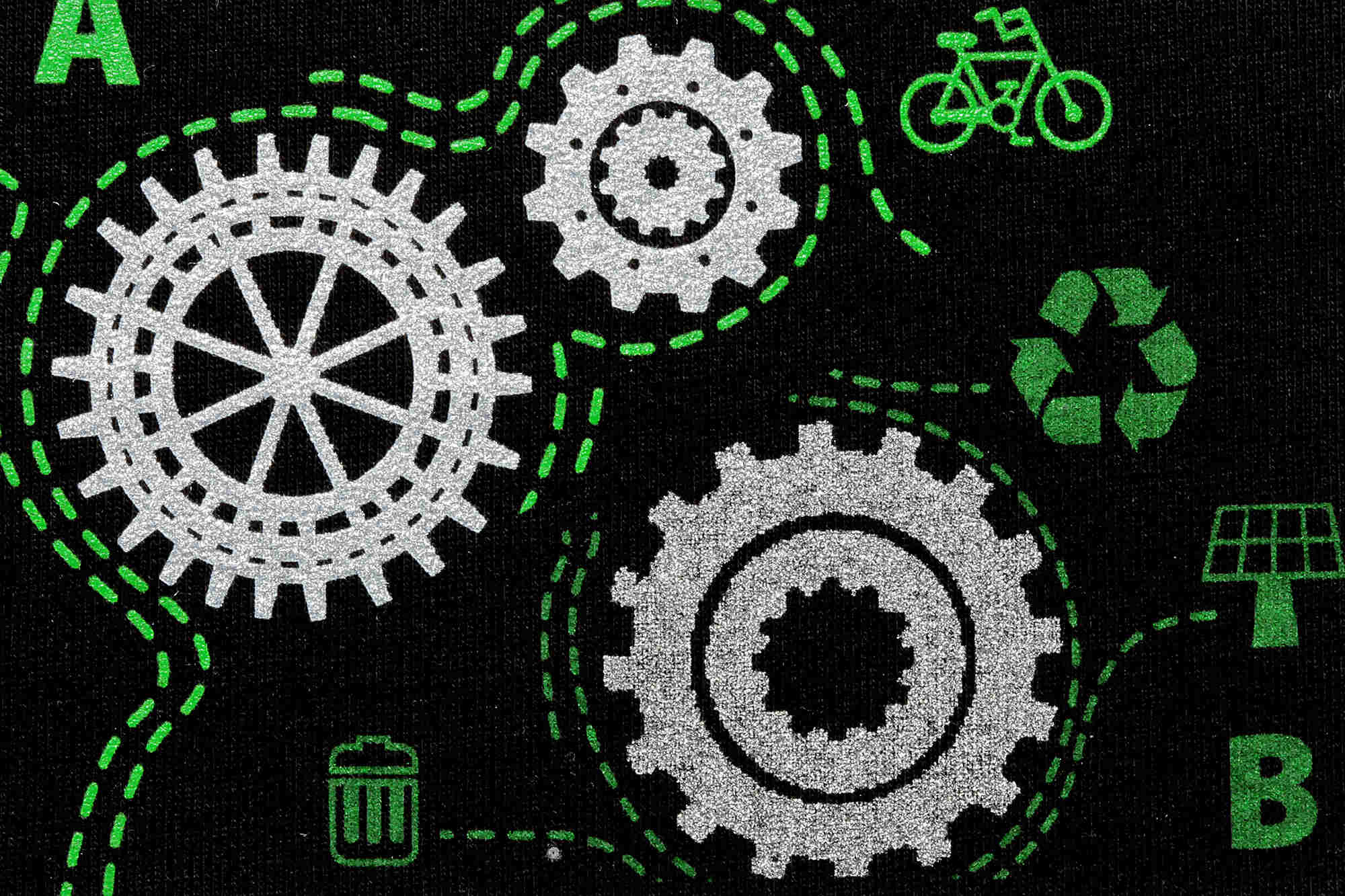 Parallèlement aux encres à base d’eau, nous avons également travaillé sur un système d’application de couleurs écologique. Son principe de fonctionnement consiste à enlever la teinture du tissu dans la zone à imprimer et d’obtenir ainsi une base de couleur « blanche » (naturelle). Une fois cette zone « nettoyée », les couleurs sont imprimées sur la zone vierge. L’avantage principal de cette technologie réside dans le fait que le produit final est très résistant à la décoloration et durable.